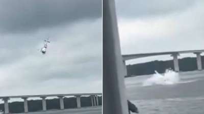 पुलिस का हेलिकॉप्टर सीधे नदी में गिरा