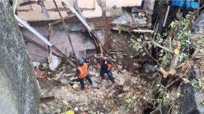 मुंबई में बारिश का कहर: भांडुप में 50 फीट ऊंची दीवार ढही, 5 घर तबाह