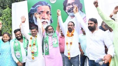 हेमंत सोरेन की मौजूदगी में भाजपा नेताओं ने थामा झामुमो का झंडा