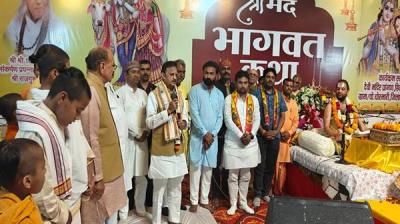 श्रीमद भागवत कथा में शामिल हुए उप मुख्यमंत्री शुक्ल