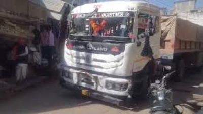 गूगल मैप के भरोसे पड़ा महंगा, गली में घुसा ट्रेलर, कई वाहन क्षतिग्रस्त
