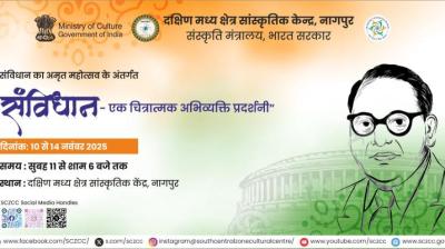 नागपुर, 8 नवंबर। संस्कृति मंत्रालय, भारत सरकार के दक्षिण मध्य क्षेत्र सांस्कृतिक केंद्र द्वारा संविधान का अमृत महोत्सव के अंतर्गत, केंद्र के परिसर में “संविधान- एक चित्रात्मक अभिव्यक्ति” नामक एक...