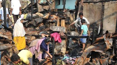 नक्खीघाट में भीषण अग्निकांड: 25 झुग्गियां जलकर राख, गैस सिलिंडर फटने से दहला इलाका