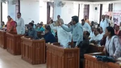 नगर निगम सदन में घमासान, पार्षदों का जोरदार हंगामा