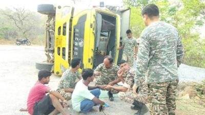 बड़ा हादसा: पुसपाल घाट में हाइवा दुर्घटनाग्रस्त, तीन घायल, CRPF ने दिखाई त्वरित मदद