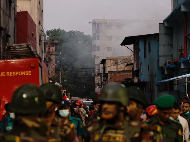 ढाका। बांग्लादेश की राजधानी ढाका के मीरपुर इलाके में एक गारमेंट फैक्ट्री में भीषण आग लग गई। इस हादसे में 16 लोगों की मौत हो गई है। अधिकारियों का कहना है कि मरने वालों की संख्या बढ़ सकती है। चार मंजिला फैक्ट्री में दोपहर करीब 12 बजे आग लगी, जो तीन घंटे बाद बुझाई गई। इसके पास ही एक केमिकल गोदाम में भी आग लग गई थी। हालांकि, अभी तक ये पता नहीं चल सका है आग फैक्ट्री में पहले लगी या गोदाम में। गवाहों के मुताबिक, गोदाम में ब्लीचिंग पाउडर, प्लास्टिक और हाइड्रोजन पेरोक्साइड्स रखे थे, जो आग को तेज करते हैं। प्लास्टिक जलने से जहरीली गैस निकलती है। फायर सर्विस डायरेक्टर मोहम्मद ताजुल इस्लाम चौधरी ने कहा कि पीडि़त शायद जहरीली गैस से मारे गए।