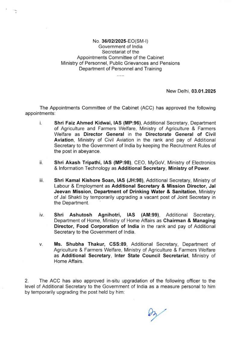 मध्यप्रदेश कैडर के आईएएस अधिकारी आकाश त्रिपाठी ऊर्जा मंत्रालय भारत सरकार में एडिशनल सेक्रेटरी बनाए गए।