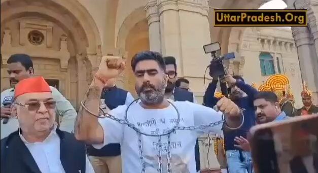 लखनऊ। बजट सत्र के पहले दिन सपा ने अनोखे रूप में प्रदर्शन किया। इस दौरान सपा विधायक हाथ पैरों में जंजीर पहनकर प्रदर्शन किया। अतुल प्रधान ने बजट सत्र में शामिल होने से पहले कहा, योगी सरकार बताती है कि विश्व में लगातार देश का डंका बज रहा है। हमारे भारतीय लोग, जिन्हें 40 घंटा जंजीरों में जकड़कर रखा गया। अमेरिका से उन्हें बेरहमी से डिपोर्ट किया गया।