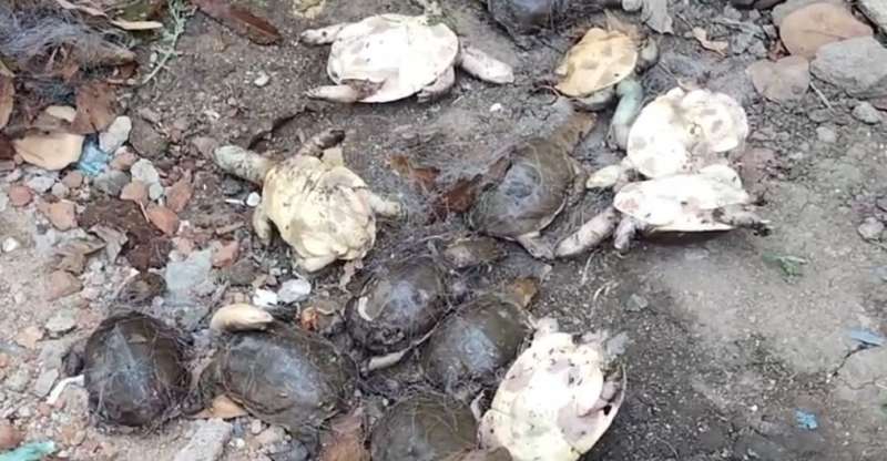 बिलासपुर: रतनपुर स्थित महामाया मंदिर कुंड के किनारे 30 कछुए मृत मिले। सभी जाल में फंसे हुए थे। घटना सामने आने के बाद हड़कंप मचा हुआ है। कछुओं की मौत की वजह स्पष्ट नहीं है। ट्रस्ट का सहयोग लेकर वन विभाग मामले की जांच में जुटी है।