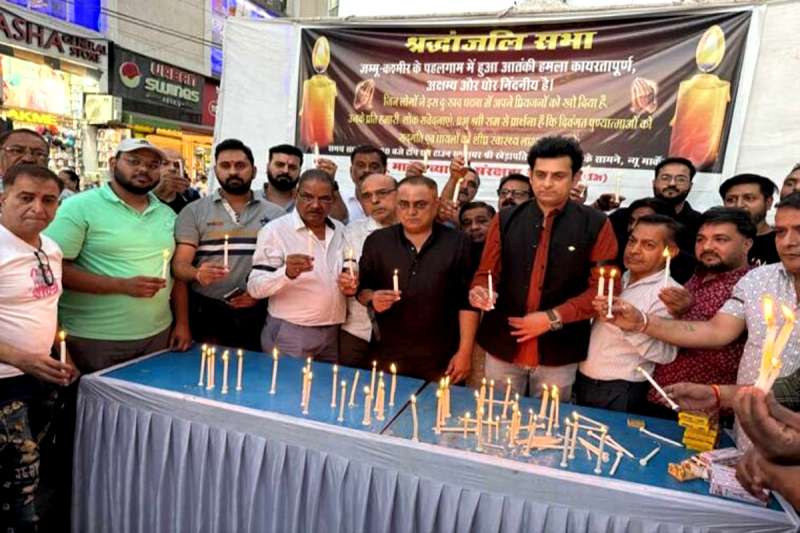 भोपाल: संरक्षण समिति(रजि)" के बैनर तले टॉप एन टाउन चौराहे पर न्यूमार्केट के व्यापारियों ने श्रद्धांजलि सभा आयोजित की, साथ ही साथ व्यापारियों ने भारत सरकार से आतंकवाद पर निर्णायक प्रहार करने की पुरजोर मांग की। न्यू मार्केट व्यापार संरक्षण समिति के श्री सतीश कुमार गंगराड़े, पवन वरदानी, प्रदीप कुमार गुप्ता, अजय देवनानी सहित बड़ी संख्या में व्यापारियों के साथ न्यू मार्केट आए भोपाल के नागरिकों ने भी कैंडल मार्च में कैंडल जलाकर दिवंगतों को श्रद्धांजलि अर्पित की, एवं घटना में घायल हुए लोगों के शीघ्र स्वास्थ्य लाभ की कामना की। आतंकवादियों की इस कायराना हरकत के बाद भोपाल के सभी नागरिकों सहित न्यू मार्केट के व्यापारियों में भी आक्रोश व्याप्त है और व्यापारी यह चाहते हैं कि भारत सरकार बालाकोट एवं उरी वाली घटनाओं के बाद हुई एयर स्ट्राइक एवं सर्जिकल स्ट्राइक की तरह ही इस बार कड़ी एवं निर्णायक कार्रवाई की जाए।