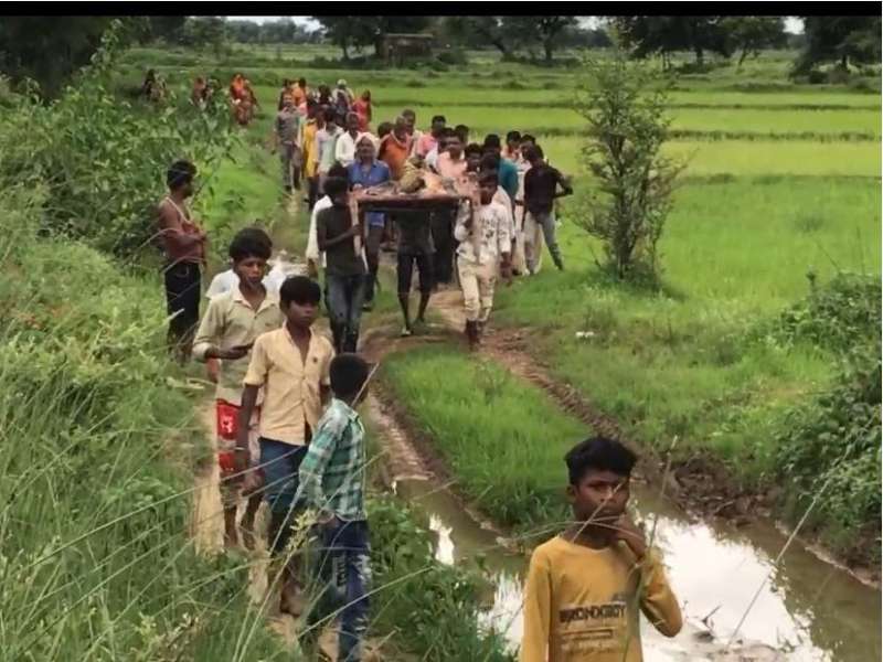 सतना में बदहाल व्यवस्था: कीचड़ से होकर शव को खाट पर ले जाना पड़ा पीएम के लिए