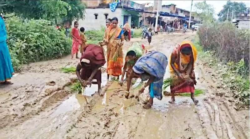 सड़क नहीं बनी तो खेत बना डाली सड़क! बड़खेड़ा में महिलाओं ने रोप दी धान की फसल