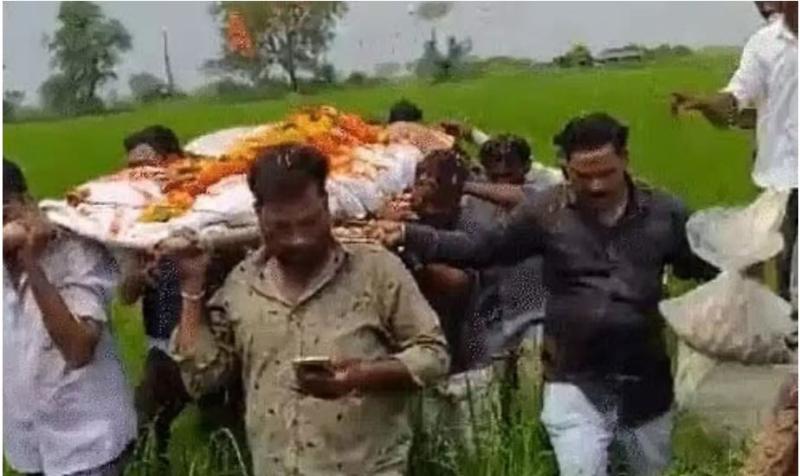 भोपाल की शर्मनाक तस्वीर, शव को कंधे पर उठाकर कीचड़ और ऊबड़-खाबड़ रास्तों से ले जानी पड़ी अंतिम यात्रा