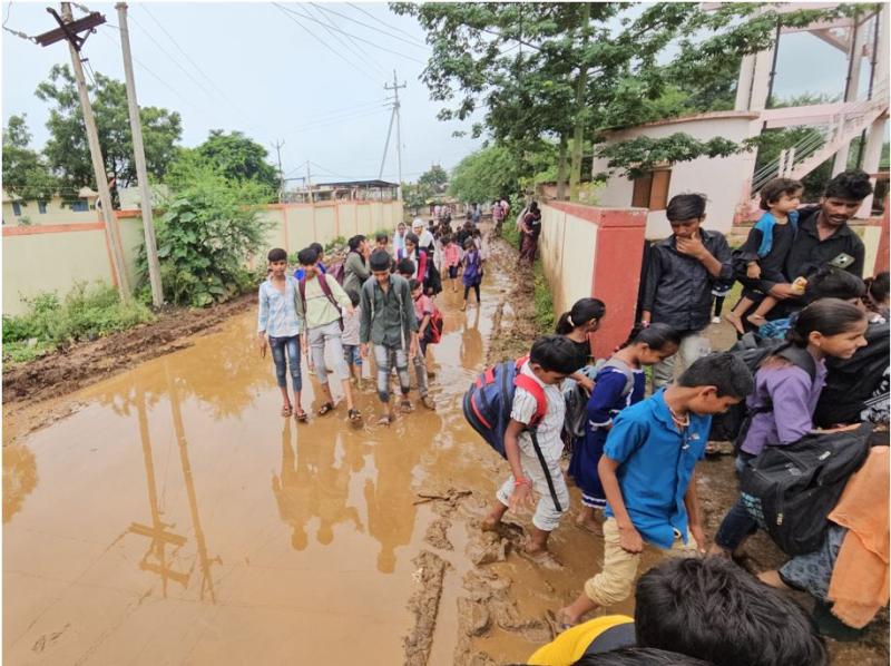 बाढ़ को पार करने को मजबूर छात्र