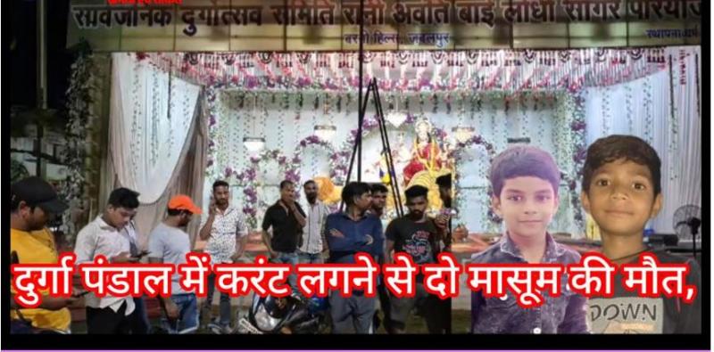 जबलपुर : मध्य प्रदेश के जबलपुर जिले में बुधवार को एक बड़ा हादसा हो गया। तिलवाराघाट थाना क्षेत्र के बरगी हिल्स क्षे़त्र के एक दुर्गा पंडाल में करंट फैसले से दो मासूम बच्चों की मौत हो गई। जिसके बाद पंडाल में भगदड़ मच गई। सजावट के लिए लगाई गई झालर से करंट लगने के कारण दो बच्चों की मौत हो गयी। जानकारी के अनुसार, बच्चे दुर्गा पंडाल में आयोजित आरती में शामिल होने के लिए आए थे। इस घटना से दुर्गा पंडाल में हड़कंप मच गया। वहीं, पुलिस ने मर्ग कायम कर प्रकरण को विवेचना में लिया है। जिला कलेक्टर ने घटना की जांच के आदेश जारी किये हैं। तिलवारा पुलिस ने बताया कि बरगी हिल्स स्थित चीफ इंजीनियर ऑफिस के सामने दुर्गा पंडाल लगा है। बुधवार की रात करीब 9 बजे आरती में शामिल होने के लिए लोग पहुंचे थे। इसी दौरान दो बच्चे करंट की चपेट में आ गए और उनकी मौत हो गई।