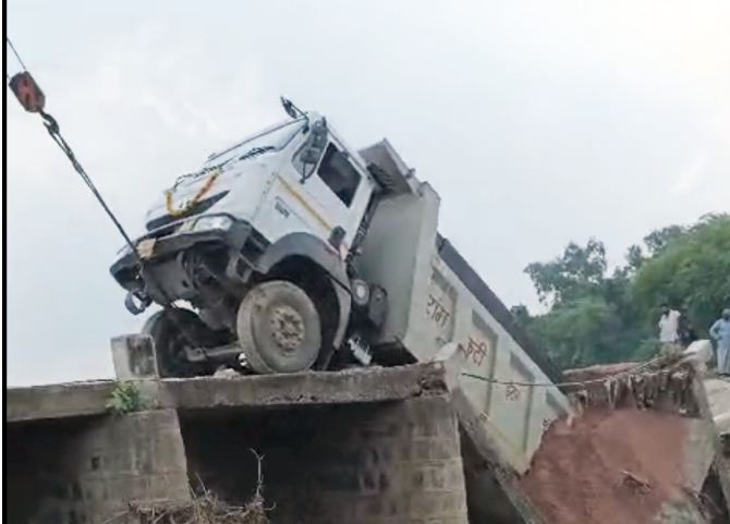 छतरपुर में बड़ा हादसा: रेत से भरे ओवरलोड ट्रक के गुजरते ही पुल ढहा