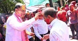 Vishnu Deo Sai ने मुख्यमंत्री निवास में अधिकारियों-कर्मचारियों संग खेली होली, रंगों की बौछार