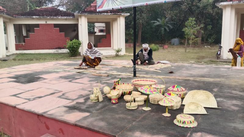 "बांबू शिल्प कार्यशाला" मे मध्यप्रदेश के शिल्पकार श्री मोती बसोर एवं समूह द्वारा बांबू से सुंदर कलाकृतियों का निर्माण किया जा रहा है| इसमे बांबू की टोकरियाँ, लैम्प, सजावट का समान इत्यादि का समावेश है| बांस से बारीक नकाशीदार एवं मजबूत कलाकृतियों का निर्माण हो रहा है|