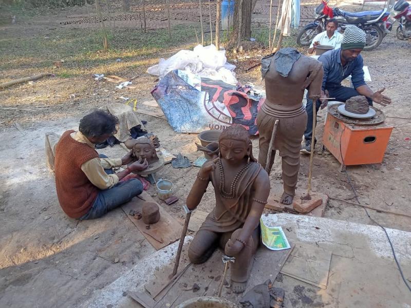 "मिट्टी शिल्प कार्यशाला" मे मध्य प्रदेश के शिल्पकार धनीराम प्रजापति एवं समूह द्वारा मिट्टी शिल्प का निर्माण किया जा रहा है| इस कार्यशाला मे कला और आस्था का अद्भुत संगम देखने को मिल रहा है| मिट्टी से भव्य मूर्तियों का निर्माण पारंपरिक तकनीकों का उपयोग कर हो रहा है| इस कार्यशाला मे मूर्ति निर्माण की प्रत्येक प्रक्रिया – मिट्टी की तैयारी से लेकर सूक्ष्म नक्काशी तक दर्शकों को भारतीय शिल्प परंपरा से रूबरू करा रही है|