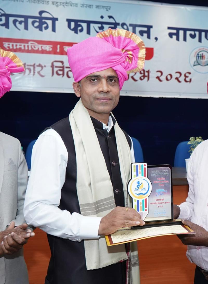 नागपुर, 20 जनवरी। नगर के प्रतिष्ठित डॉ आंबेडकर कॉलेज दीक्षाभूमि के कनिष्ठ महाविद्यालय के हिन्दी अध्यापक प्रा.सूरज तेलंग को उनके हिन्दी भाषा क्षेत्र में उल्लेखनीय कार्यों के लिए 'महात्मा फूले राज्यस्तरीय शिक्षक रत्न पुरस्कार- 2026' से सम्मानित किया गया।