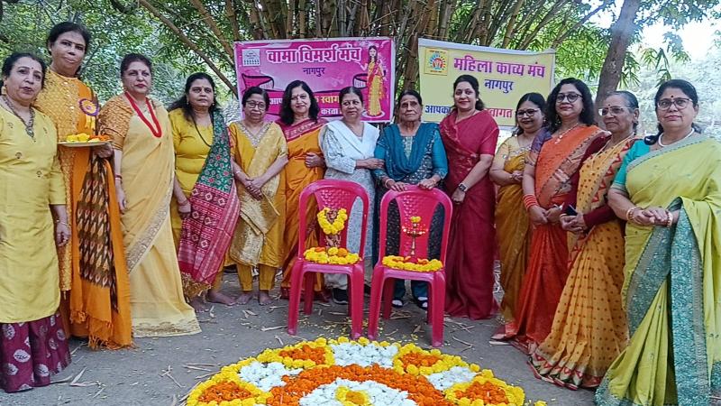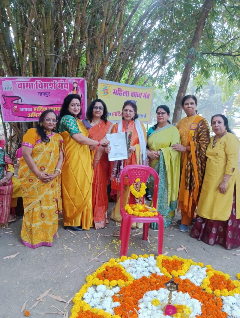 नागपुर, 28 जनवरी। वामा विमर्श मंच एवं महिला काव्य मंच , नागपुर द्वारा वसंतोत्सव मनाया गया । नक्षत्र उद्यान की हरियाली में बासंती फूलों की आभा में सखियों ने बासंती परिधानों के साथ कार्यक्रम को बासंती रंगों से भर दिया।